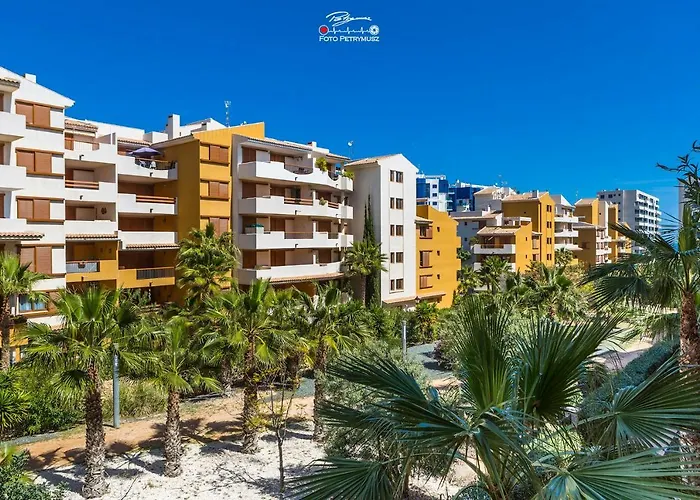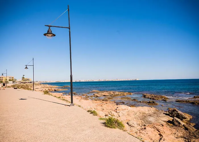Amento "Blue" Muy Cerca Del Mar位于托雷维耶哈,在蓬塔普里马海滩附近.海滨的住宿场所配有免费私人停车场,室外游泳池和高尔夫球场. 公寓距离托雷维耶哈码头有4.2公里,Cala Capitan Beach有2.8公里,在这个地区游玩很方便.